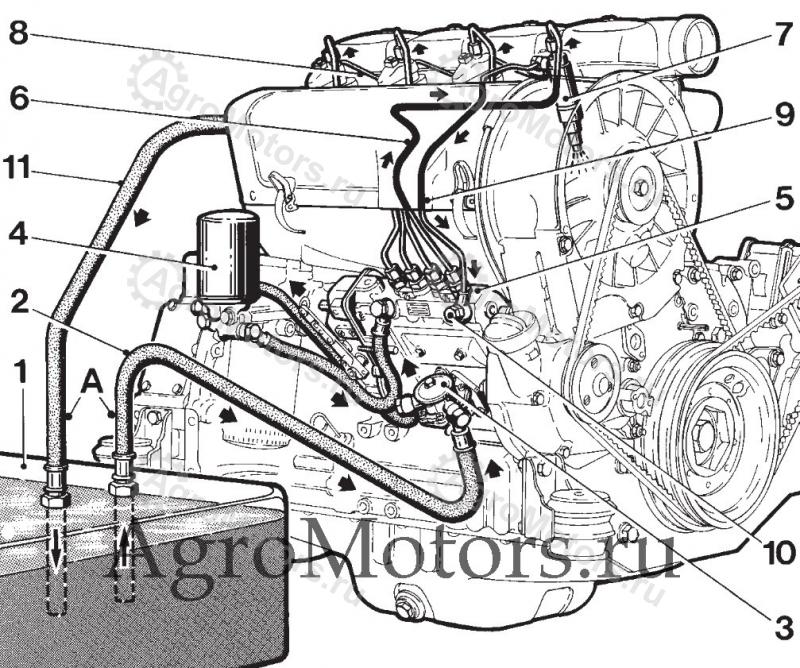 Схема циркуляции топлива двигателей Deutz 912