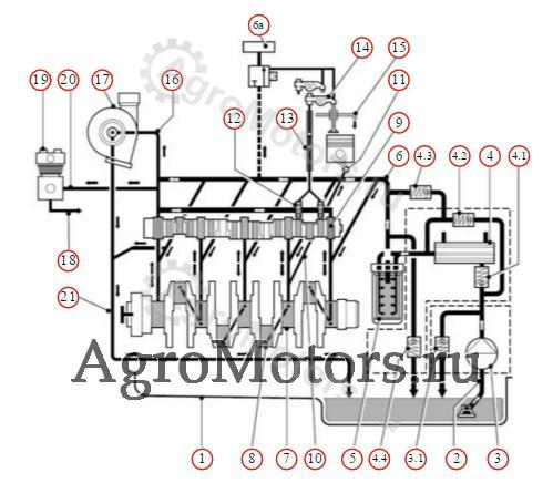 15. Трубопровод возврата в поддон смазочного масла.
