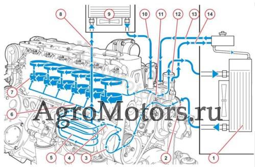 Схема охлаждающей жидкости двигателя Deutz TCD 2012