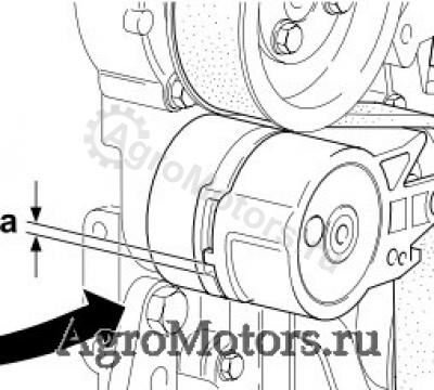 - Если расстояние "а" меньше 3 мм, ремень с натяжным роликом необходимо заменить.