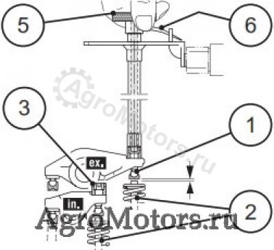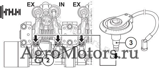 - Для этого ослабить все контргайки (3) настраиваемого коромысла.