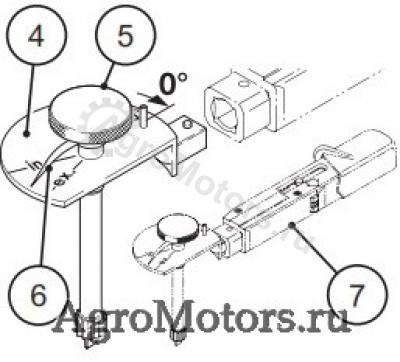 - Удерживать ручку (5) точно в этом положении и закрутить контргайку (3) динамометрическим ключом (7) с моментом затяжки 20 Нм.