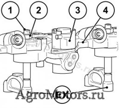 - Теперь установить обозначенные на рисунке 2 коромысла клапанов, как описано выше.