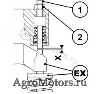 - Надеть зазор управляющего золотника X с регулировочным устройством ( 64) на регулировочный винт (1) в EX и настроить следующим образом: